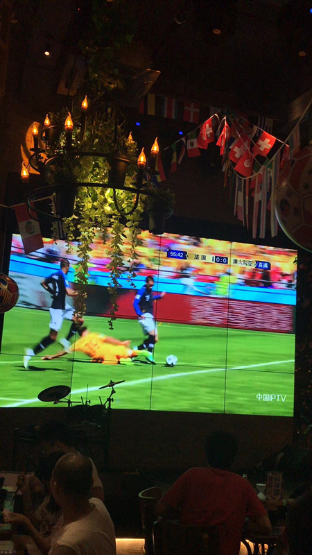此次世界杯期間,艾維圖科技早早的為許多餐廳、酒吧安裝了視覺(jué)感爆棚的液晶拼接屏,酒吧是許多球迷喜歡聚集的地方,尤其是許多足球主題酒吧更是球迷熱衷去的地方。在LED大屏下,高清的賽事畫(huà)面,動(dòng)感的音樂(lè),配上讓人迷醉的美酒,還有一群志同道合的球迷朋友,還有什么比這些來(lái)得更酣暢淋漓的呢?