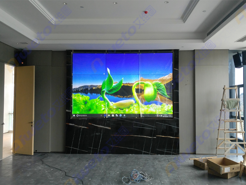 艾維圖科技對整個大屏幕進行了功能規(guī)劃,設(shè)計了3×3拼接,采用目前較流行的液壓式前維護支架。該顯示系統(tǒng)使用了艾維圖55寸超窄邊液晶拼接單元,外置視頻圖像處理器以及一套高性能中央控制系統(tǒng)系統(tǒng)。本次建設(shè)選用的液晶顯示單元單屏分辨率為1920×1080,畫面清晰、色彩真實、大畫面大尺寸視覺沖擊感強力!結(jié)合會議室現(xiàn)場環(huán)境簡直天衣無縫。