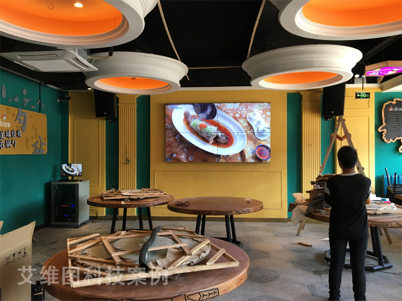 根據(jù)東莞萬(wàn)江“鍋勺故事”餐廳的實(shí)際情況, 艾維圖科技技術(shù)工程師給出了55寸2x2掛墻式拼接屏顯示方案,艾維圖的高清液晶拼接屏穩(wěn)定、性能可靠,滿足各方面要求,這款拼接屏擁有的IPS面板,可以讓色彩更飽和、畫(huà)質(zhì)更細(xì)膩。而IPS技術(shù)所帶來(lái)的廣視角讓視線更開(kāi)闊,多角度觀看無(wú)偏差,帶來(lái)驚艷的多方位的視覺(jué)體驗(yàn),無(wú)論是背景顯示還是餐廳的公共空間都能有清晰如一的視覺(jué)享受。