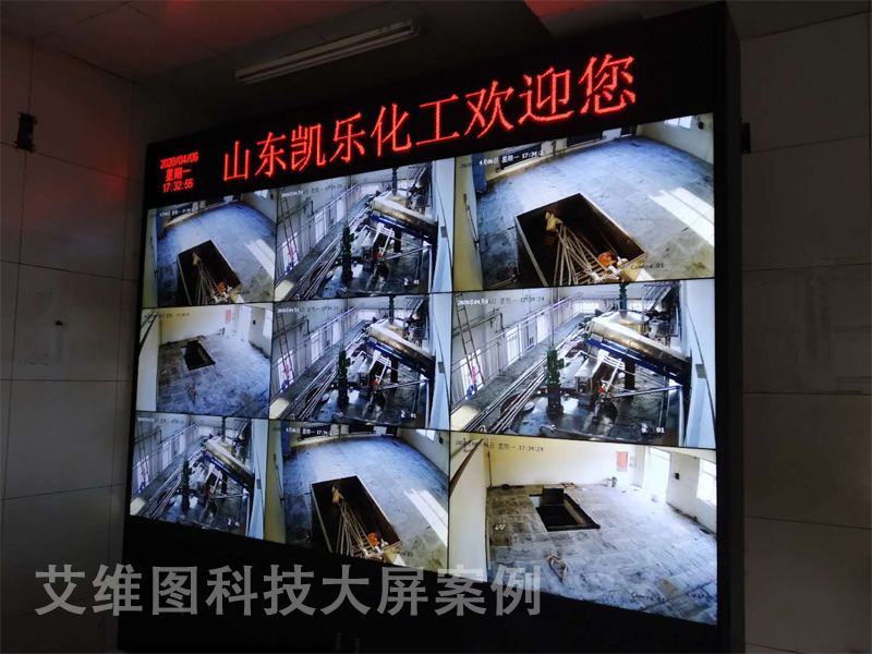 本次高清液晶大屏幕拼接屏監(jiān)控系統(tǒng)建設(shè),共包含9臺(tái)49寸LG拼接屏、1臺(tái)海康威視解碼矩陣、9單元落地機(jī)柜電視墻、1套3人位操作臺(tái)、1套P3.75單色LED顯示屏,9套高清信號(hào)線材等從,分別用在山東省棗莊市凱樂化工有限公司高清視頻監(jiān)控室。