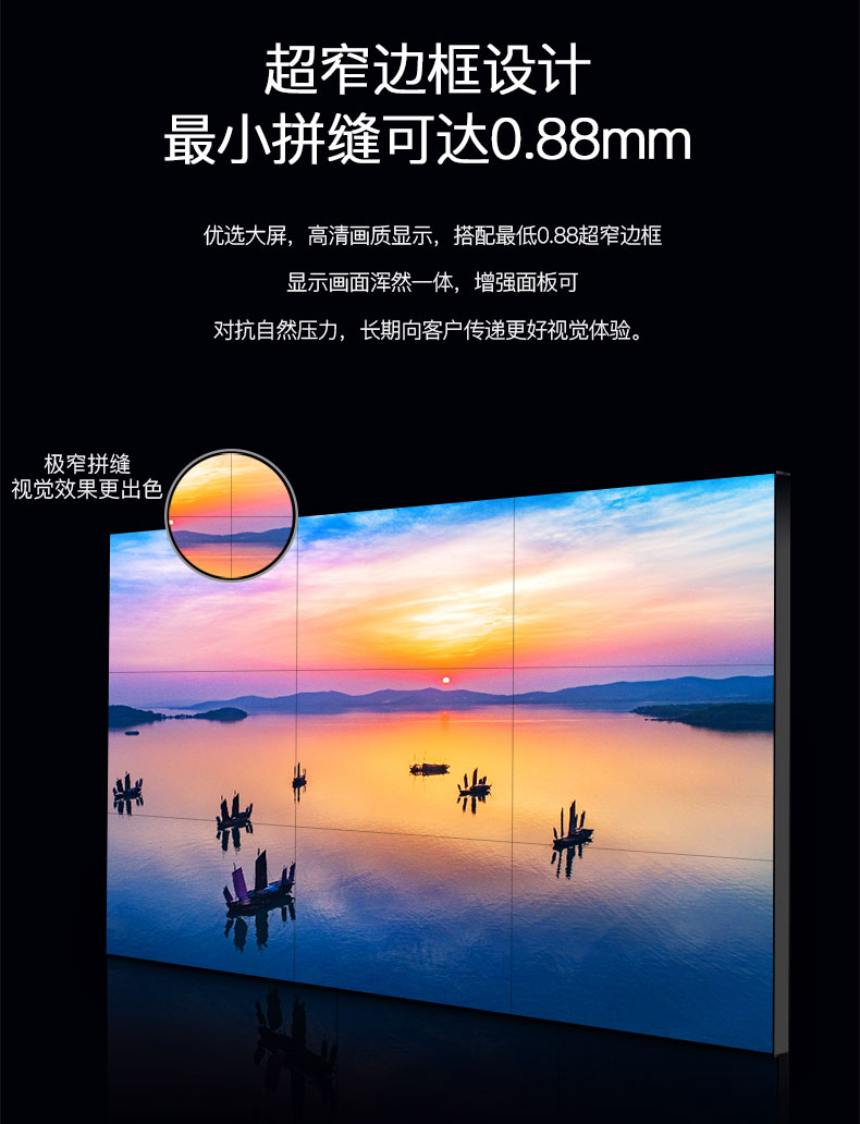 1、拼縫:由于液晶拼接屏是由多塊拼接屏面板所組成的。所以在各個(gè)面板之間會(huì)存在著一定的拼接縫隙。拼接縫隙當(dāng)然是越小越好。拼接縫隙如果太大了的話(huà),則會(huì)影響視覺(jué)效果。