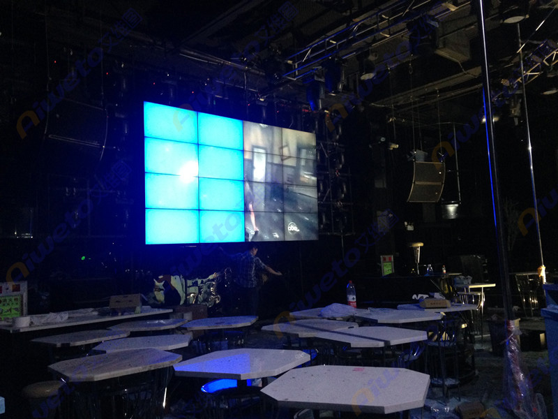 此次項目是為東莞南城Logo酒吧大廳內(nèi)安裝1套高清大屏幕液晶拼接系統(tǒng),為其打造了東莞高端夜店氣氛。