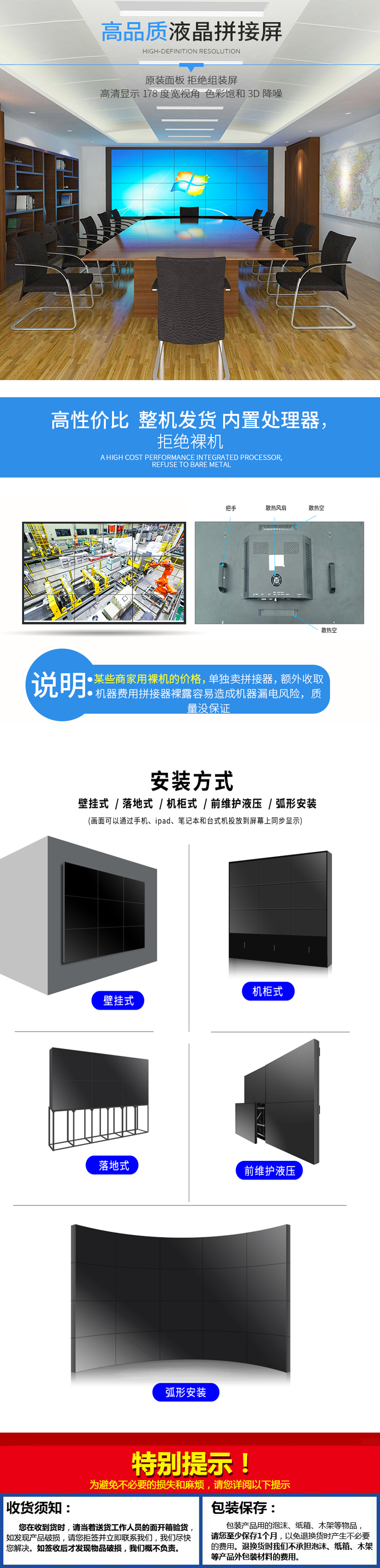 拼接屏采用高速嵌入式結(jié)構(gòu)的產(chǎn)品,由于高度集成,所以擁有更高的產(chǎn)品保證,本公司提供項目驗收后12個月的無償維修服務的質(zhì)保期,質(zhì)保內(nèi)免費技術(shù)支持服務和軟件免費升級服務,產(chǎn)品故障免費保修,用戶可更加放心使用。